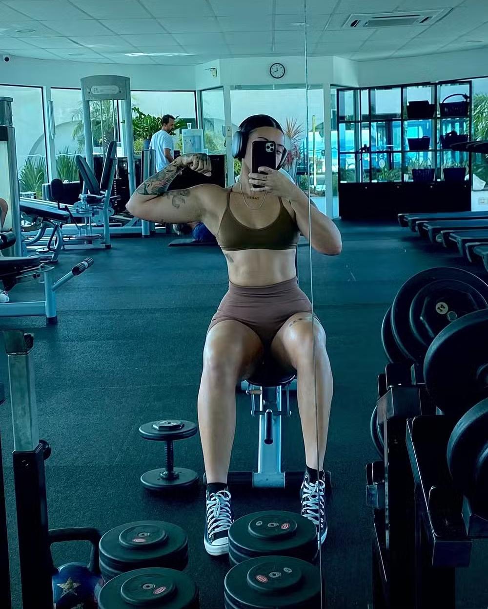 Camilly Victoria exibiu seu shape durante treino nesta sexta-feira (25). A filha de Carla Perez e Xanddy estava com uma camiseta branca, que tirou em seguida, ficando apenas com seu look fitness composto por top e micro short.
