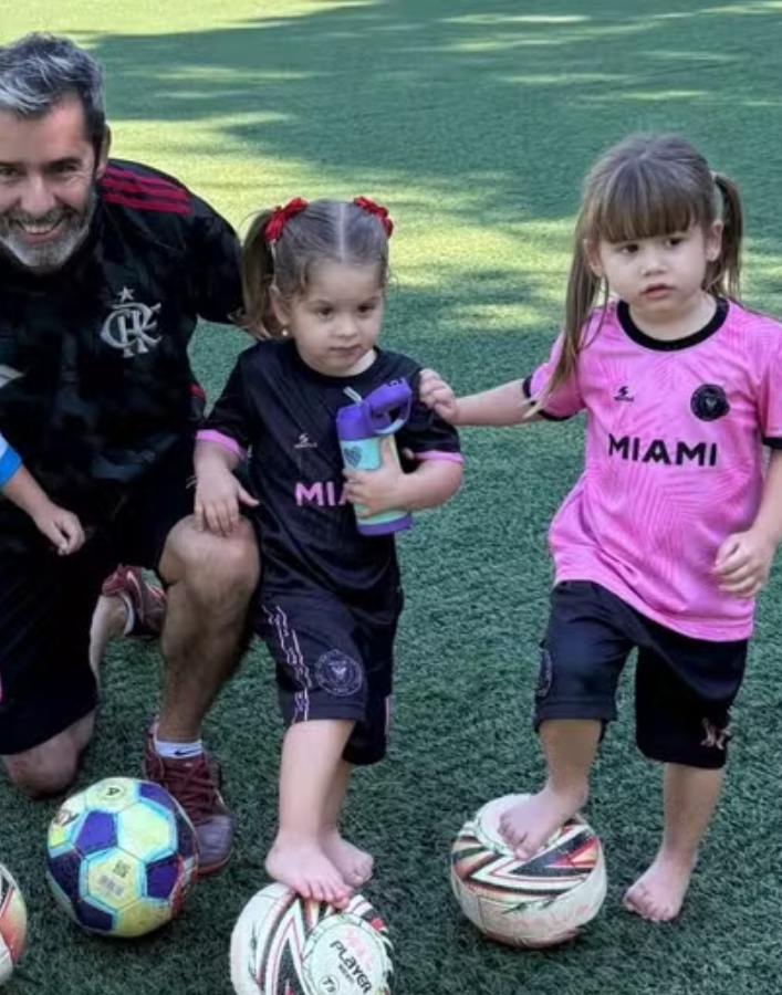 Virginia Fonseca compartilhou alguns registros das filhas Maria Alice, de 3 anos, e Maria Flor, de 2 anos, fazendo aula de futebol nesta terça-feira (6). A influenciadora não acompanhou as filhas por conta de uma gravação, mas publicou os registros enviados pela avó paterna, Poliana Rocha. Nas fotos, as irmãs usam uma camisa com o nome do craque argentino Lionel Messi, que joga no Inter Miami.