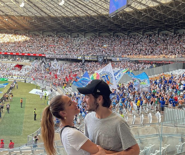 Ir a jogos de futebol é um passeio que o casal gosta de fazer. Nesta semana, eles viajaram para Minas Gerais e assistiram ao jogo do Atlético Mineiro contra o Cruzeiro no estádio Mineirão.