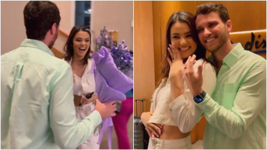 Agora, com o reencontro, trocaram por alianças novas. Mas, curioso: os dois deixaram o tradicional prateado de lado para usar peças roxas. Foi um presente que o estudante de medicina recebeu e decidiu entregar à miss.