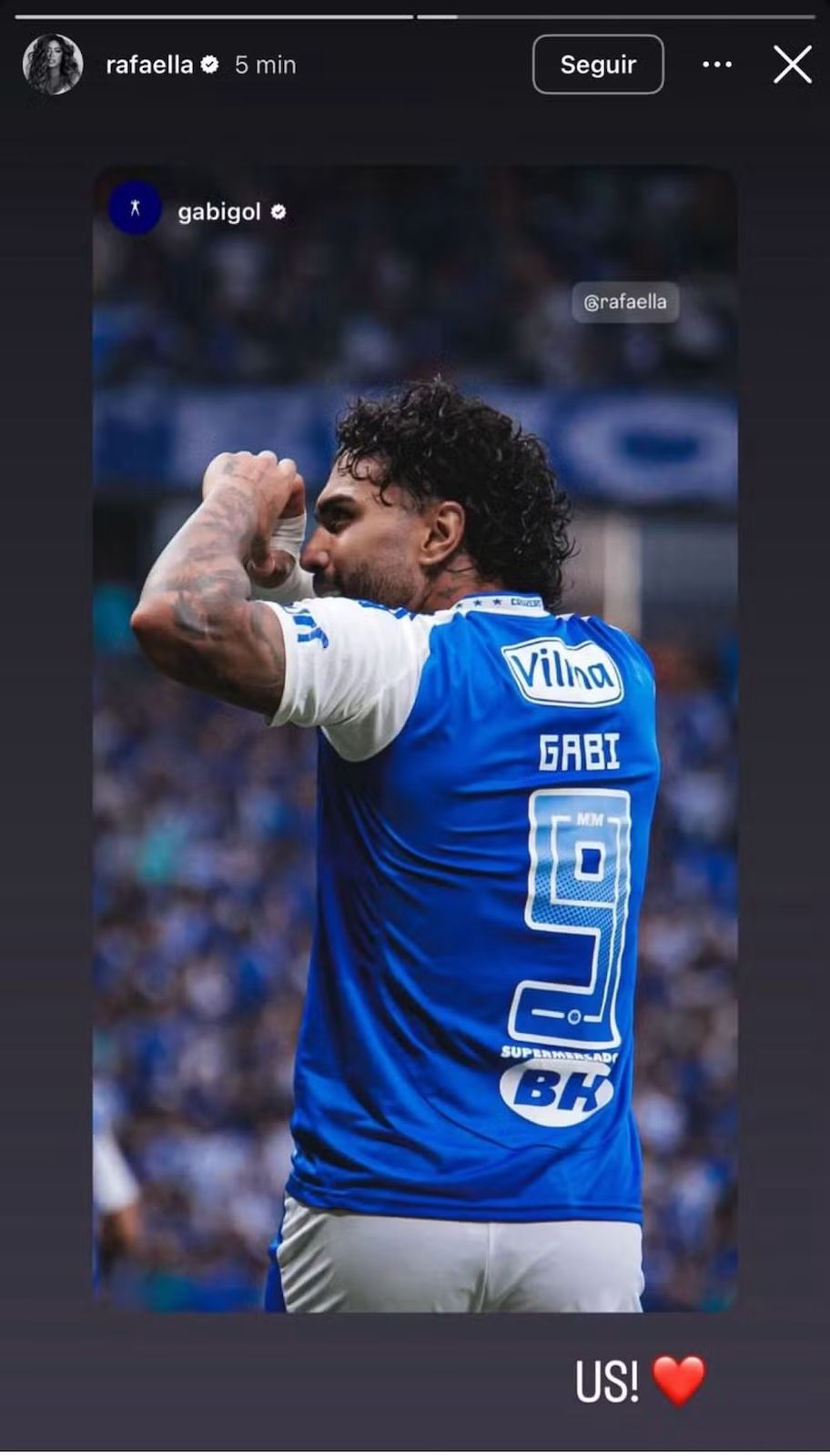 A reconciliação veio com o fim das férias do jogador e seu retorno ao Cruzeiro. No jogo contra o Juventude, em 20 de julho, ele dedicou um gol à influenciadora, fazendo um coração com as mãos para a arquibancada e marcando a namorada na publicação da comemoração. Ela respondeu com a legenda: “Nós”.