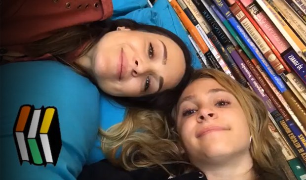Surpreendendo seus admiradores, a global exibiu um clique onde ela e a jovem apareceram de rostinho colado na companhia de vários livros na parte de trás da imagem.
