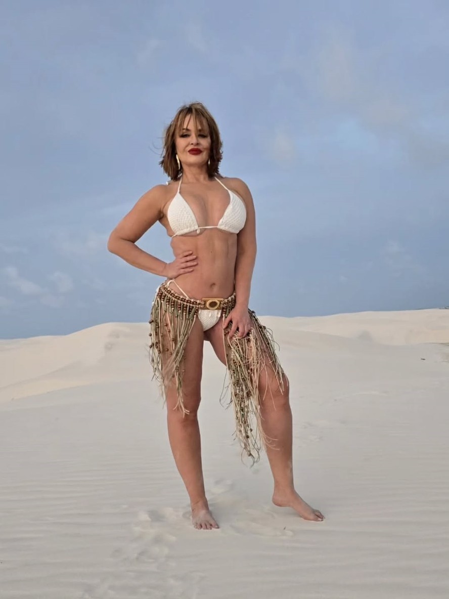 A atriz venezuelana Gaby Spanic, conhecida mundialmente pelos papéis de Paola e Paulina Bracho, em A Usurpadora, voltou a movimentar os fãs brasileiros ao compartilhar uma foto nos Lençóis Maranhenses. Durante a temporada que passa no Brasil, a artista surgiu de biquíni e usando uma saia de franjas artesanais produzida com fibras naturais e sementes da Amazônia, como açaí, jarina, tucum e olho-de-cabra, peças típicas do artesanato indígena e ribeirinho de Manaus.