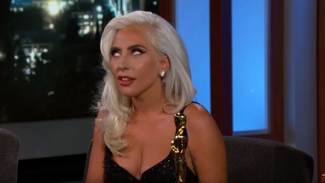 Lady Gaga esteve no programa de Jimmy Kimmel, na noite desta quarta-feira, para mostrar seu Oscar de melhor canção, conquistado no último domingo. E, claro, comentar os boatos de romance com Bradley Cooper, que tomaram as redes sociais, salas de estar e mesas de bar após a emocionante performance da dupla para a canção "Shallow", na cerimônia do Oscar. "Você teve uma conexão tão forte com Bradley que instantaneamente, e acho que isso é um elogio, as pessoas começaram a dizer, 'Eles devem estar apaixonados'", disse Kimmel.