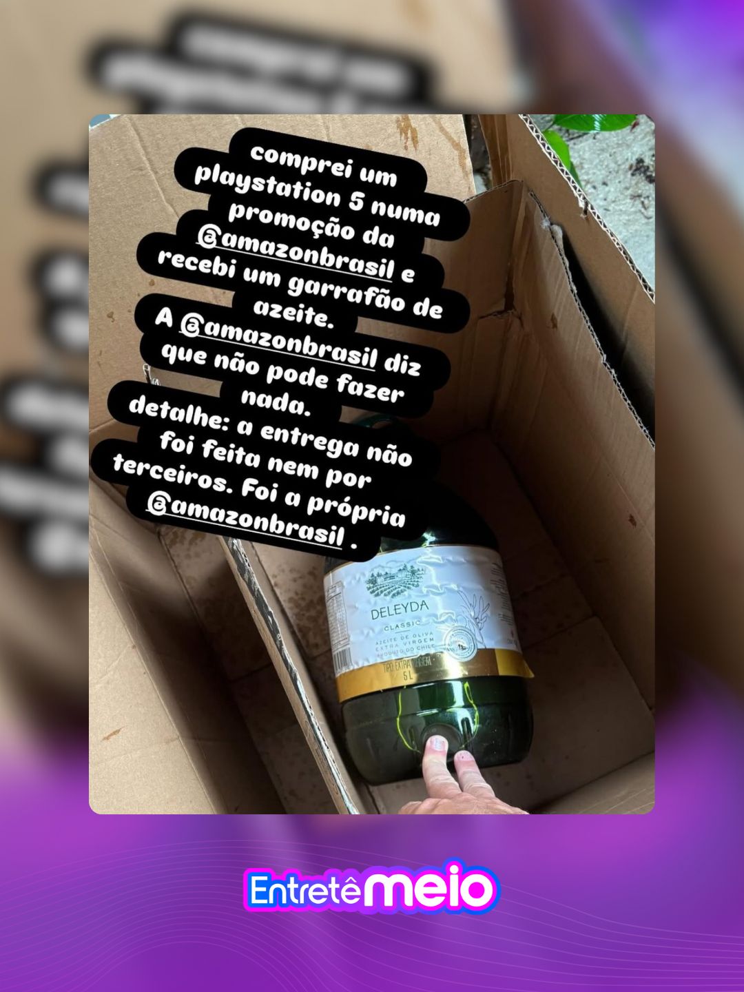 “Comprei um Playstation 5 numa promoção da Amazon Brasil e recebi um garrafão de azeite. A Amazon diz que não pode fazer nada. Detalhe: a entrega não foi feita nem por terceiros.”