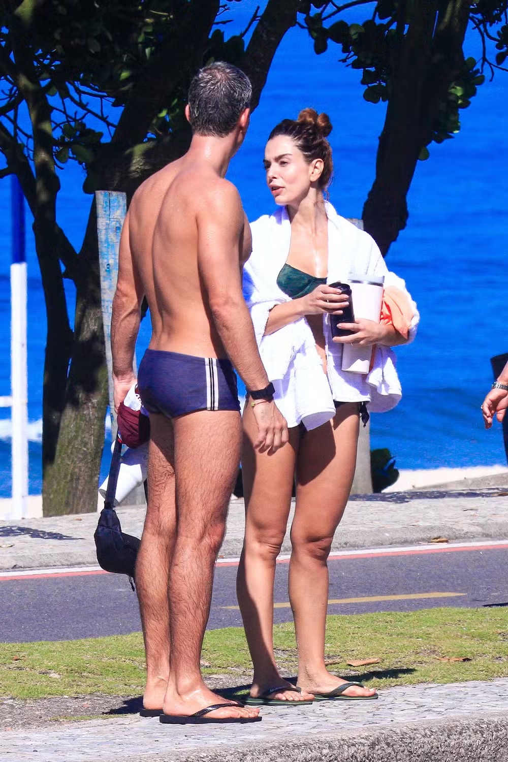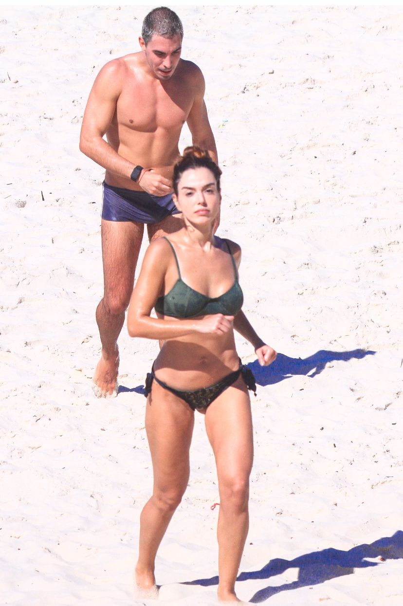 A atriz Giovanna Lancellotti, 32 anos, passou a manhã desta quarta-feira (25) em uma praia da Barra da Tijuca, na Zona Oeste do Rio de Janeiro, acompanhada do marido, Gabriel David, 27 anos.O casal tomou banho de mar juntos e a atriz demonstrou simpatia ao notar que estava sendo fotografada.
