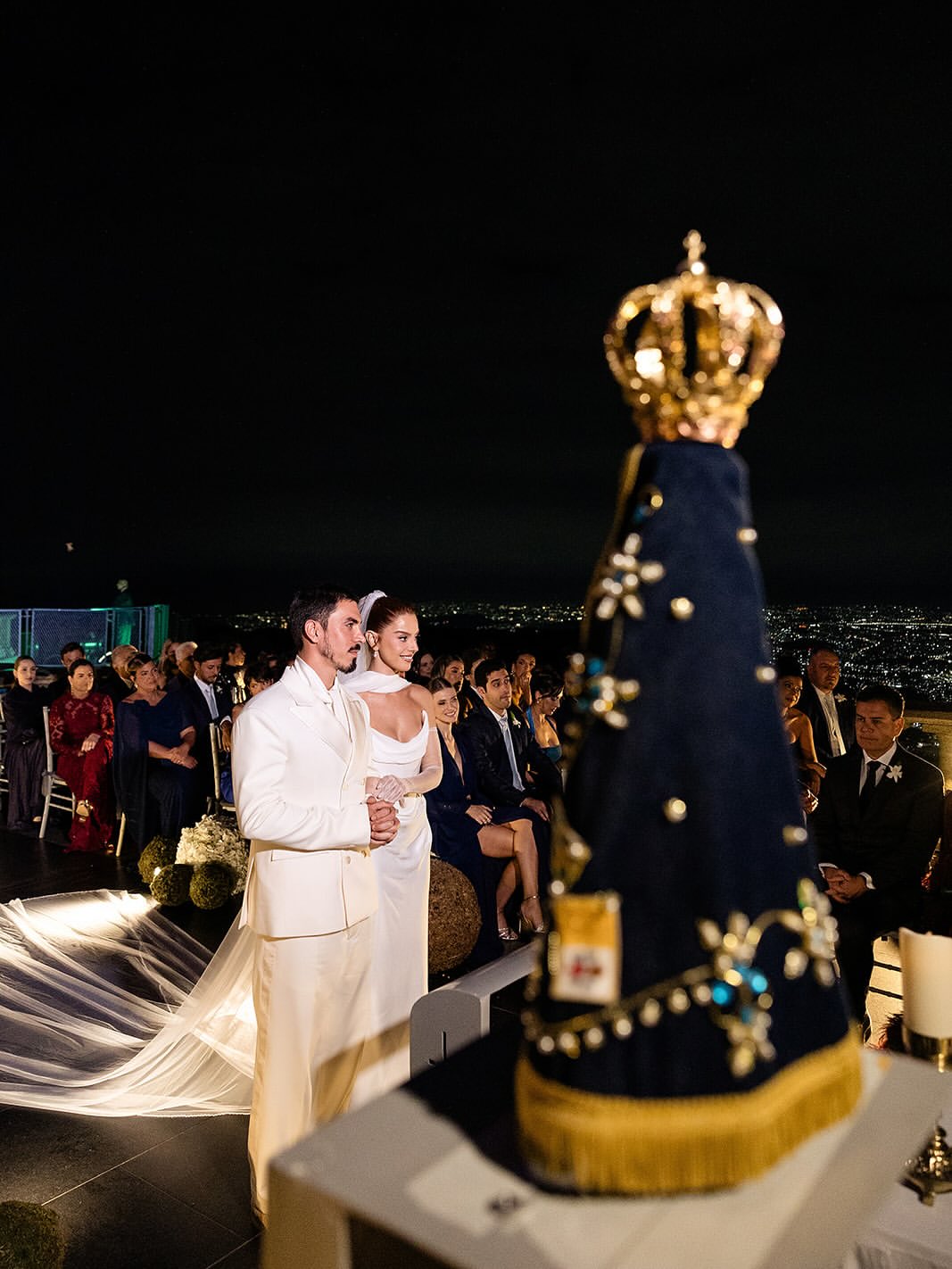 Giovanna Lancellotti, de 32 anos, e Gabriel David, de 27, oficializaram a união na noite de sábado (21), em uma cerimônia religiosa emocionante realizada aos pés do Cristo Redentor, no Rio de Janeiro. O casamento contou com a presença de familiares e padrinhos.