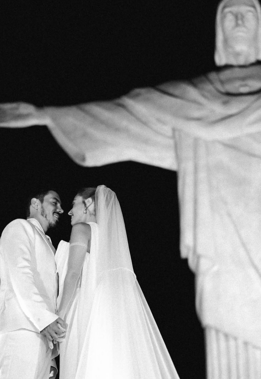 Giovanna Lancellotti, de 32 anos, e Gabriel David, de 27, oficializaram a união na noite de sábado (21), em uma cerimônia religiosa emocionante realizada aos pés do Cristo Redentor, no Rio de Janeiro. O casamento contou com a presença de familiares e padrinhos.