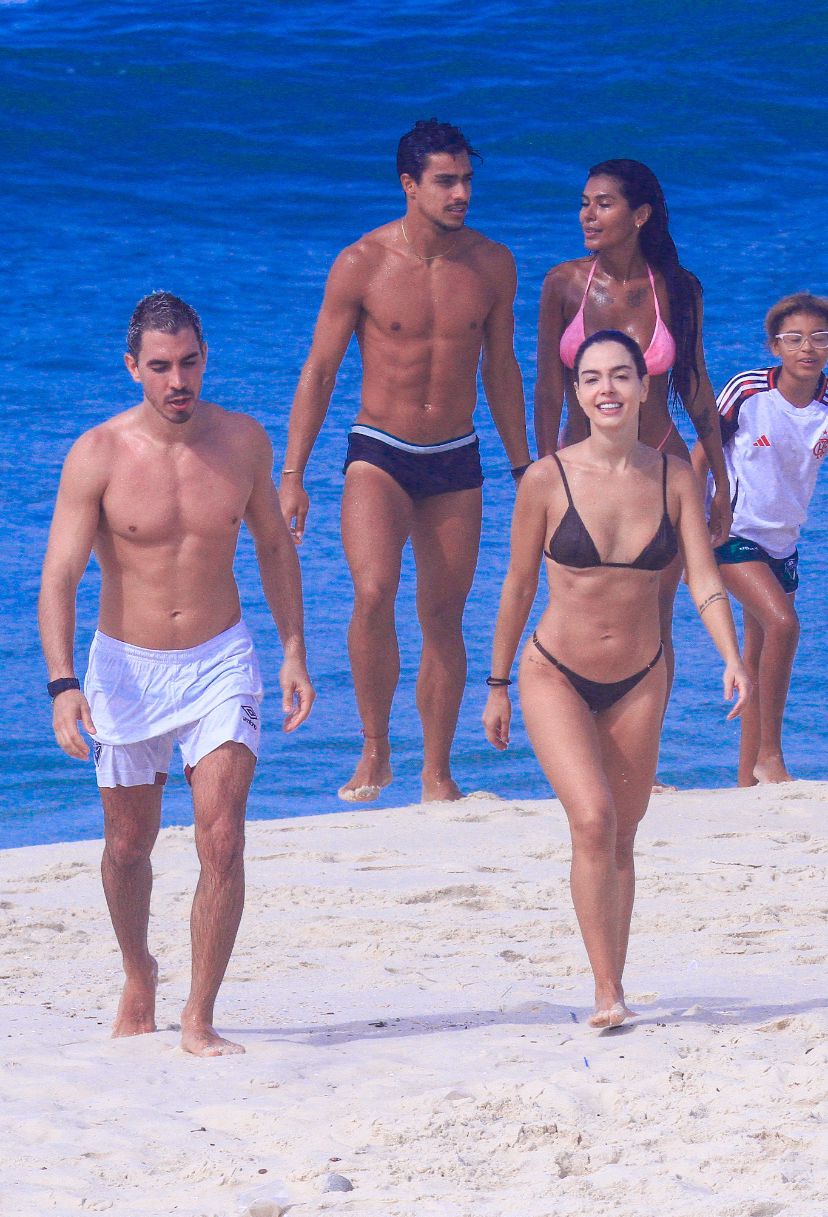 As famosas estavam acompanhadas de seus respectivos parceiros, o empresário Gabriel David e o ex-jogador Arthur Pelagio. O quarteto aproveitou o momento de lazer para jogar futevôlei e tomar banho de mar. A atriz e a cantora demonstraram sintonia no futevôlei. Depois da partida, eles ainda aproveitaram para se refrescar com um banho de mar, aproveitando a temperatura de cerca de 26°C.