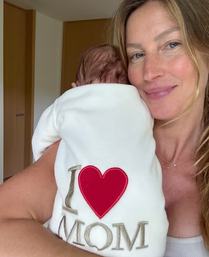 Gisele Bündchen, de 44 anos, usou suas redes sociais neste domingo (11) para celebrar o Dia das Mães e ainda mostrou o caçula pela primeira vez. As fotos foram postadas pela über model brasileira, que é mãe de Benjamin, de 15 anos, e Vivian, de 12, com Tom Brady, e de um menino de apenas 3 meses, fruto do relacionamento com o atual namorado, Joaquim Valente.