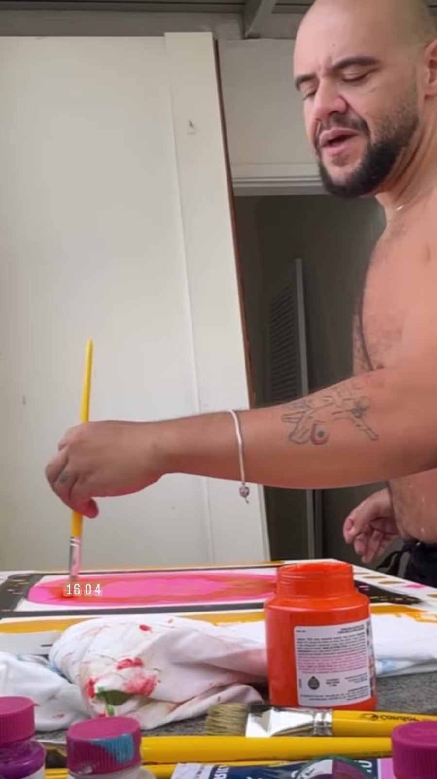 "Inclusive, agora que eu estou sem dinheiro, que roubaram o meu dinheiro, quem quiser comprar meus quadros, pode querer que eu vendo, sem nenhum problema. Os velhos que já tem guardado, os mais antigos da pandemia, os que eu vou fazer agora, fiquem à vontade, levem tudo. Isso para mim é minha energia reverberando. Não tem apego nenhum, meu amor", disse ele, que tem um perfil no Instagram só para divulgação de seu trabalho artístico