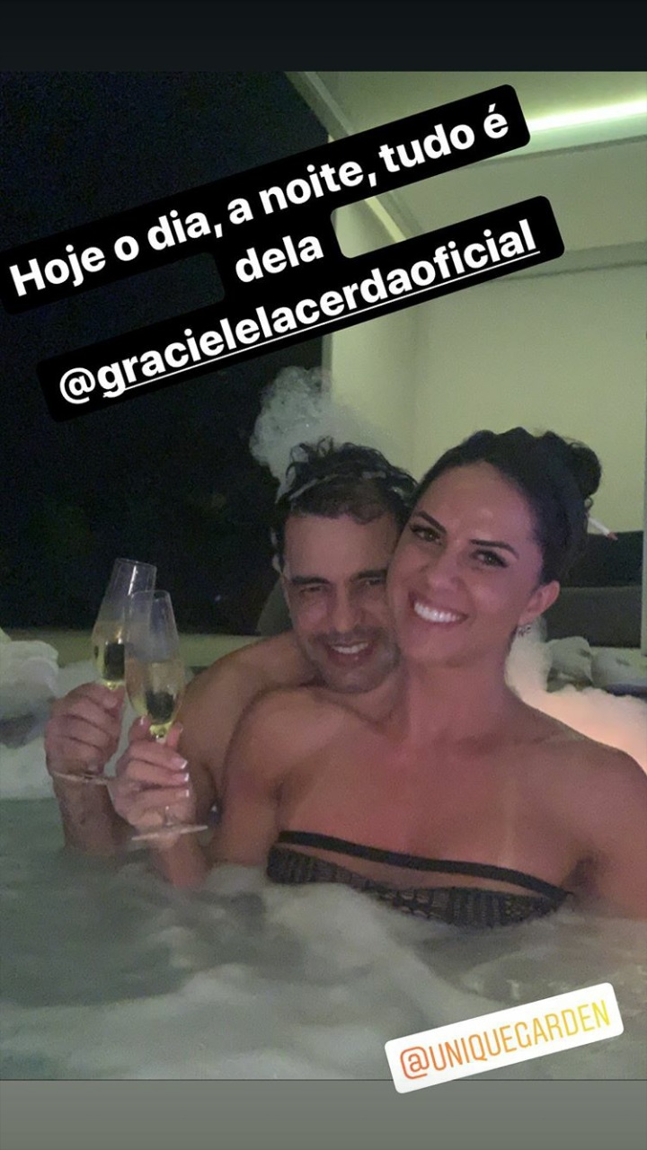 Graciele Lacerda está completando mais um ano de vida com direito a presente especial do marido, Zezé di Camargo. O casal está curtindo uma noite a dois em um chalé romântico em Mairiporã, no interior de São Paulo, e a influencer mostrou o amado dentro de um banho de espuma. As informações são da Revista Quem.