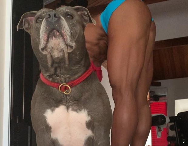 Conhecida pela disciplina férrea, Gracyanne Barbosa ganhou mais uma aliada para garantir o treino deste sábado (23): seu cão. "Você tem certeza que vai pedir pra revezar", brincou.