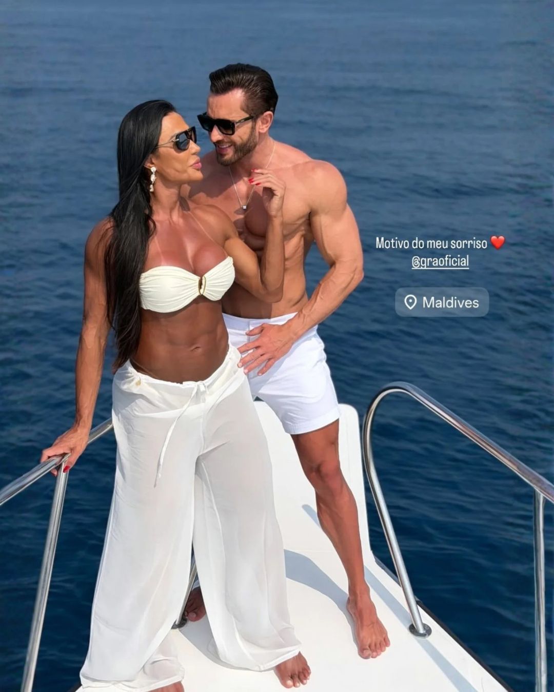 Gracyanne Barbosa, após desfilar como rainha de bateria da União da Ilha no Carnaval do Rio de Janeiro, viajou para as Maldivas, onde está hospedada com o namorado, o empresário Gabriel Cardoso. A influenciadora fitness escolheu o destino logo após a folia para descansar e compartilhou detalhes da experiência nas redes sociais, mostrando como o casal aproveita dias de luxo e tranquilidade.