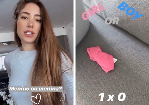 Nesse primeiro momento, o resultado da brincadeira deu que ela estaria esperando uma menina: "1x0 Girl". "Minha mãe gritou tanto", contou ela animada.