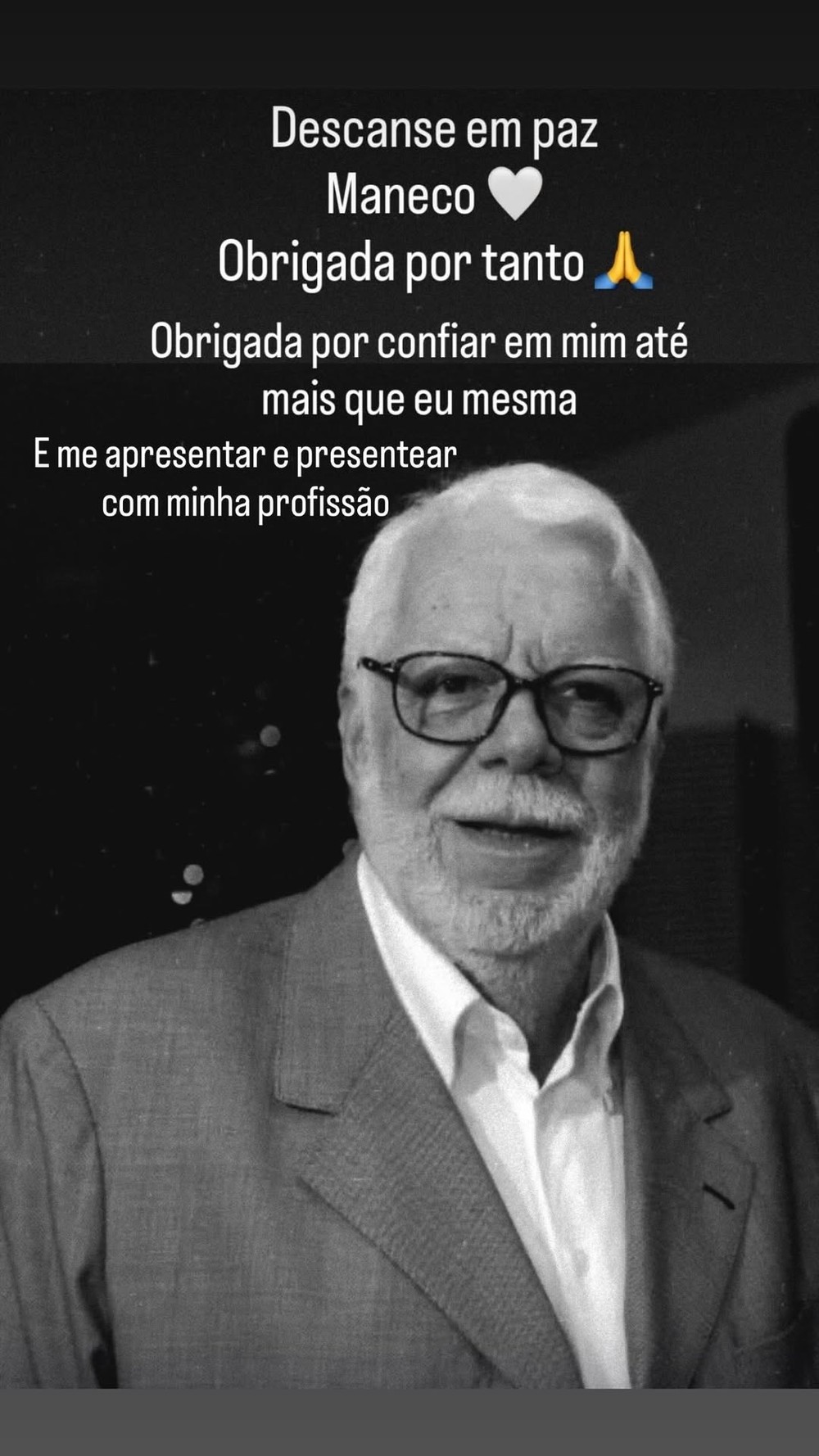 "Descanse em paz, Maneco. Obrigada por tanto! Obrigada por confiar em mim até mais que eu mesma. E me apresentar e presentar com minha profissão", escreveu Grazi.