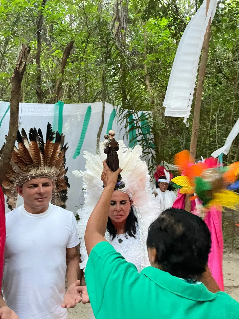 Gretchen e Esdras celebram união com bênçãos em ritual de pajelança |
