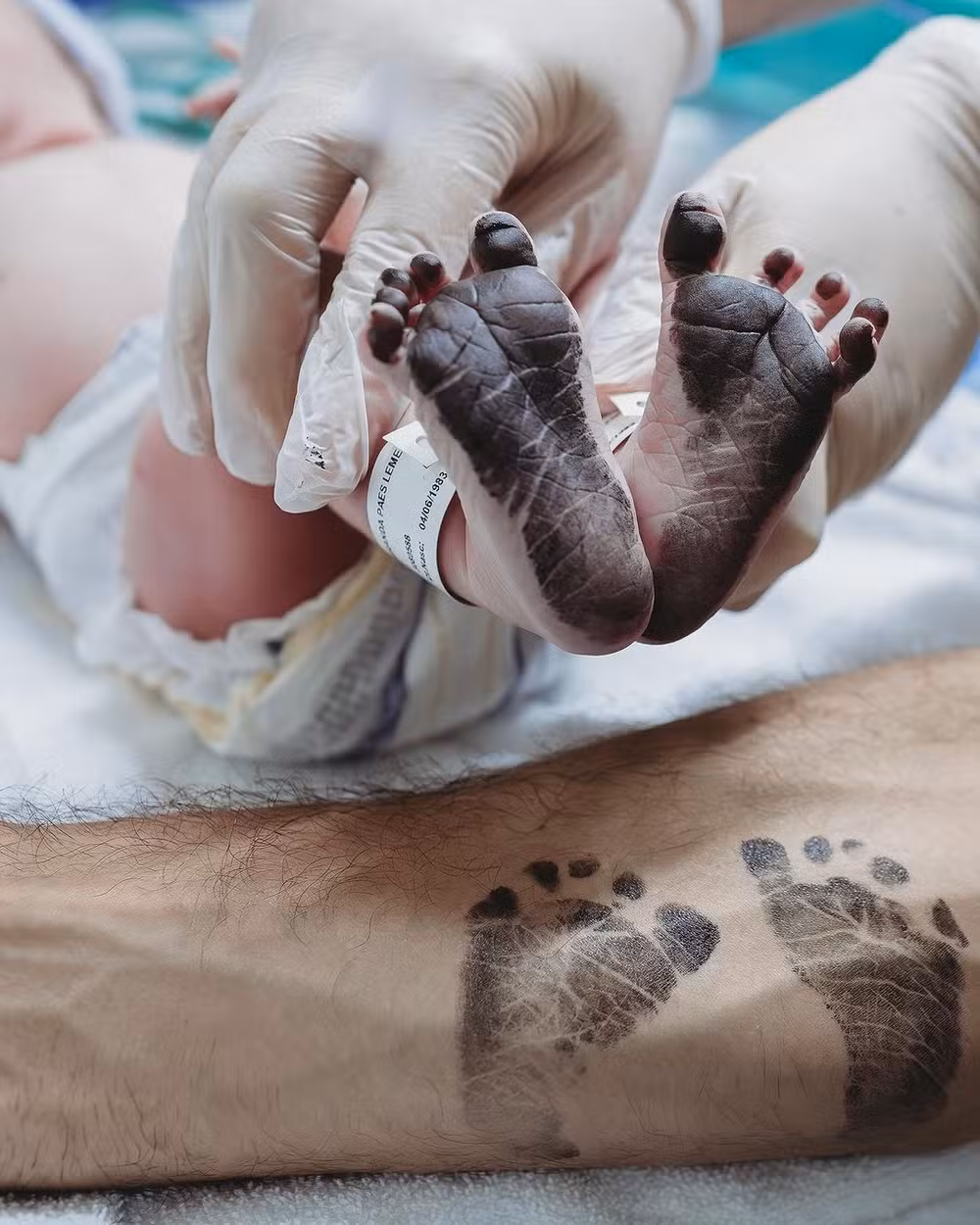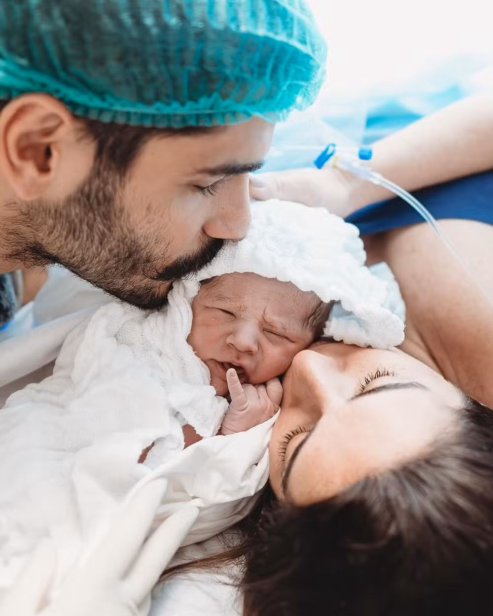 Victor postou uma foto em que aparece segurando a filha no colo logo após o seu nascimento. No clique, ele usa roupas cirúrgicas, mas Pilar está vestida com um macacão e um gorro amarelos de tricô. "Nossa", escreveu o empresário.
