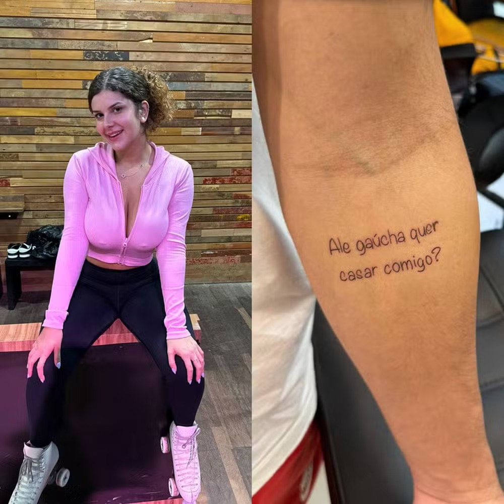 "Alê Gaúcha, quer casar comigo?", tatuou o homem no braço. De acordo com a influenciadora, esse foi o gesto mais inesperado que ela já recebeu de um assinante. A jovem conta que a conversa com o seguidor começou na plataforma onde divulga seus conteúdos eróticos.