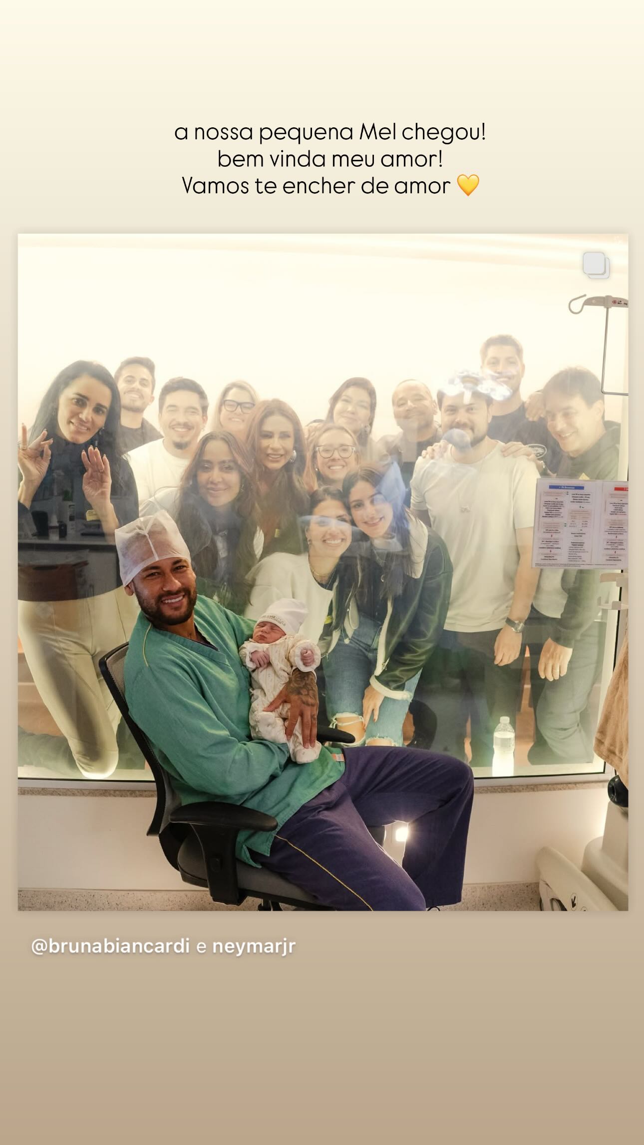Bianca Biancardi, irmã de Bruna Biancardi, que acompanhou o nascimento de mais uma sobrinha, usou suas redes sociais neste domingo (6) para celebrar a chegada de Mel, segunda filha da irmã com Neymar. No Instagram, ela compartilhou uma foto postada pelos pais da menina e fez uma declaração.