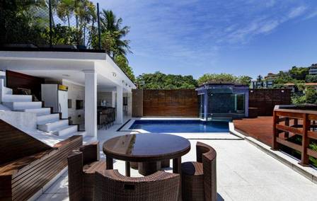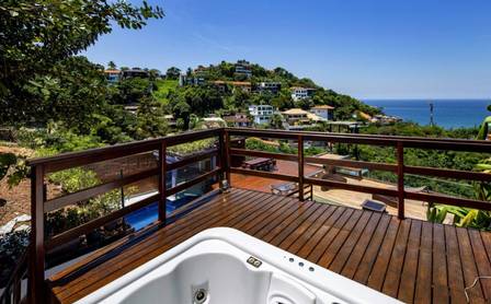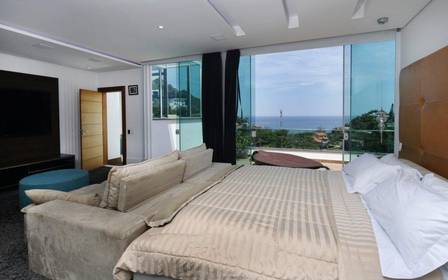 A área ampla da mansão tem academia, sistema de som, piscina, jardim, cofre, sauna e vista para o mar. O local, onde é proibido fumar, ainda tem serviço de limpeza diária, café e produtos de banho inclusos, Wi-Fi e TV por assinatura.