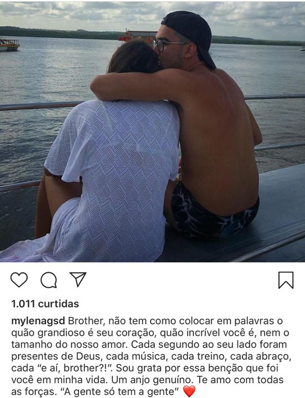 "Brother, não tem como colocar em palavras o tão grandioso é o seu coração, quão incrível você é e nem o tamanho do nosso amor. Cada segundo ao seu lado foi presente de Deus, cada música, cada treino, cada abraço, cada 'e aí, brother?!'. Sou grata por essa benção que foi você em minha vida. Um anjo genuíno. Te amo com todas as forças. A gente só tem a gente", escreveu a jovem emocionada.