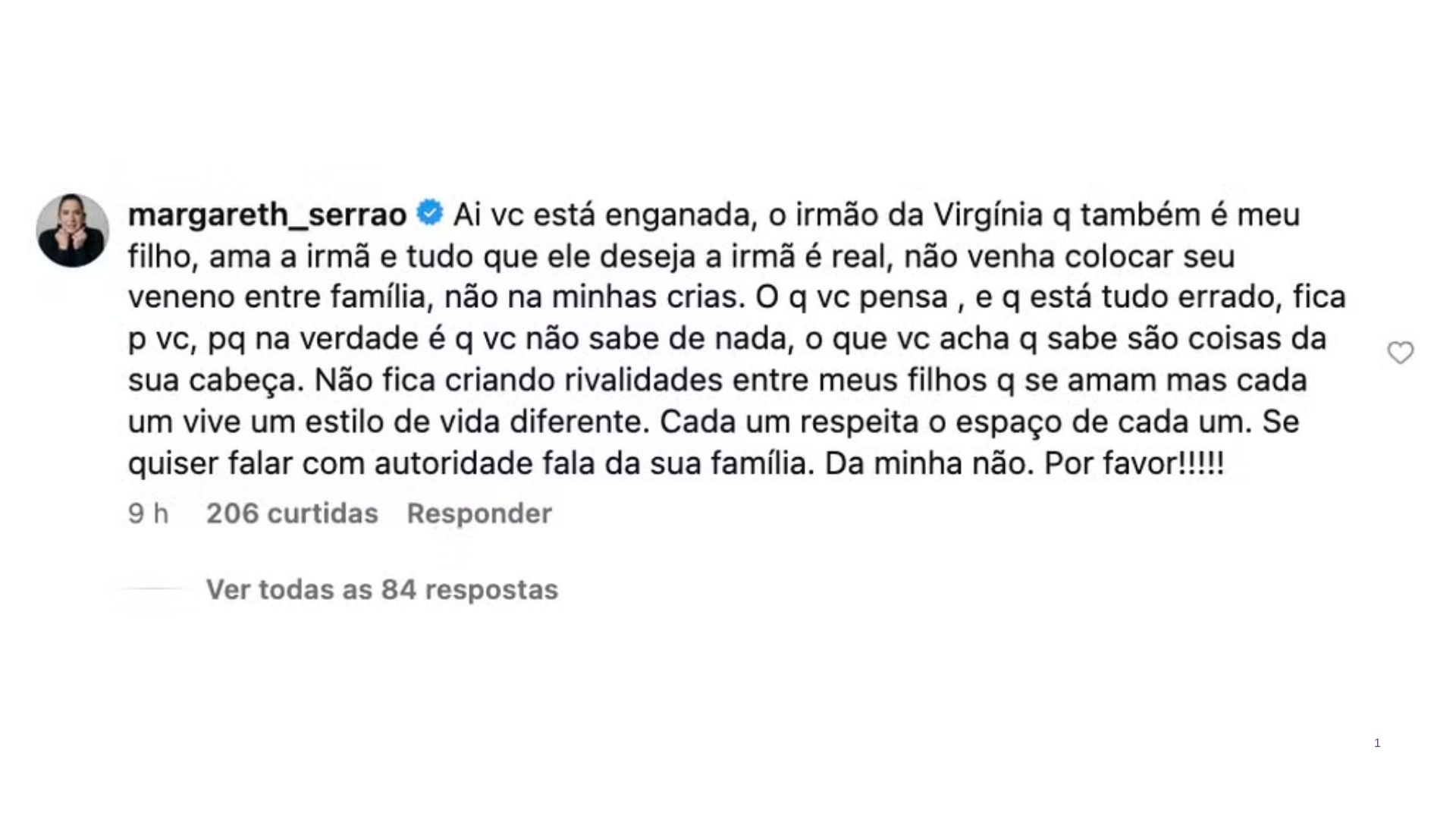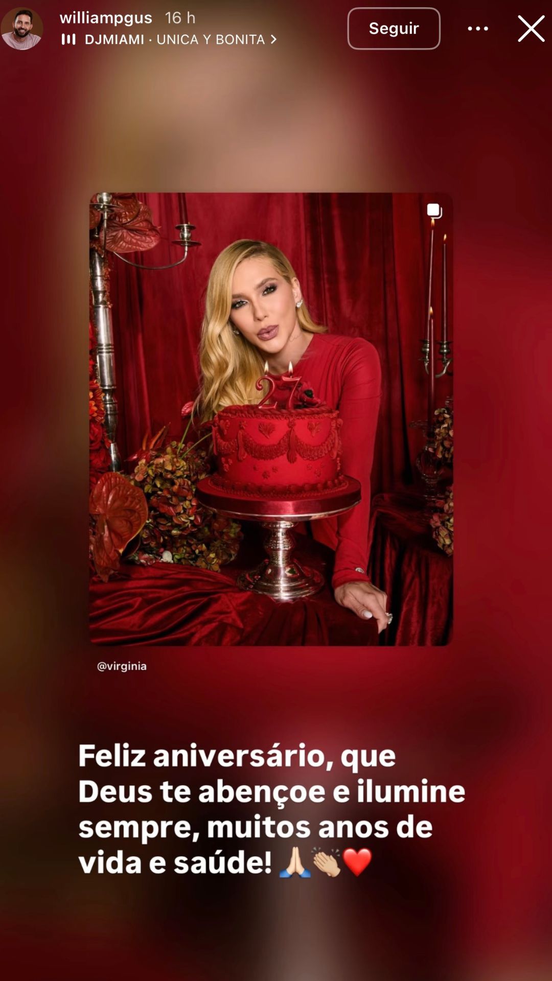 Cerca de uma hora após a publicação reflexiva, o influenciador fez questão de parabenizar a irmã publicamente. Ele publicou uma foto de Virginia acompanhada de uma mensagem carinhosa. “Feliz aniversário, que Deus te abençoe e ilumine sempre, muitos anos de vida e saúde!”, escreveu. A atitude foi vista como uma tentativa de amenizar possíveis interpretações negativas.