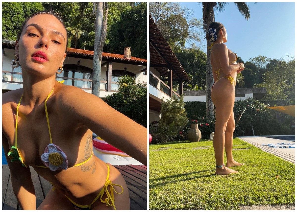 Isis Valverde fez a temperatura subir no Instagram ao compartilhar fotos em que aparece curtindo um dia de sol. Nas imagens, a atriz de 34 anos de idade usa um biquíni de crochê para renovar o bronzeado à beira da piscina de casa, no Rio de Janeiro.