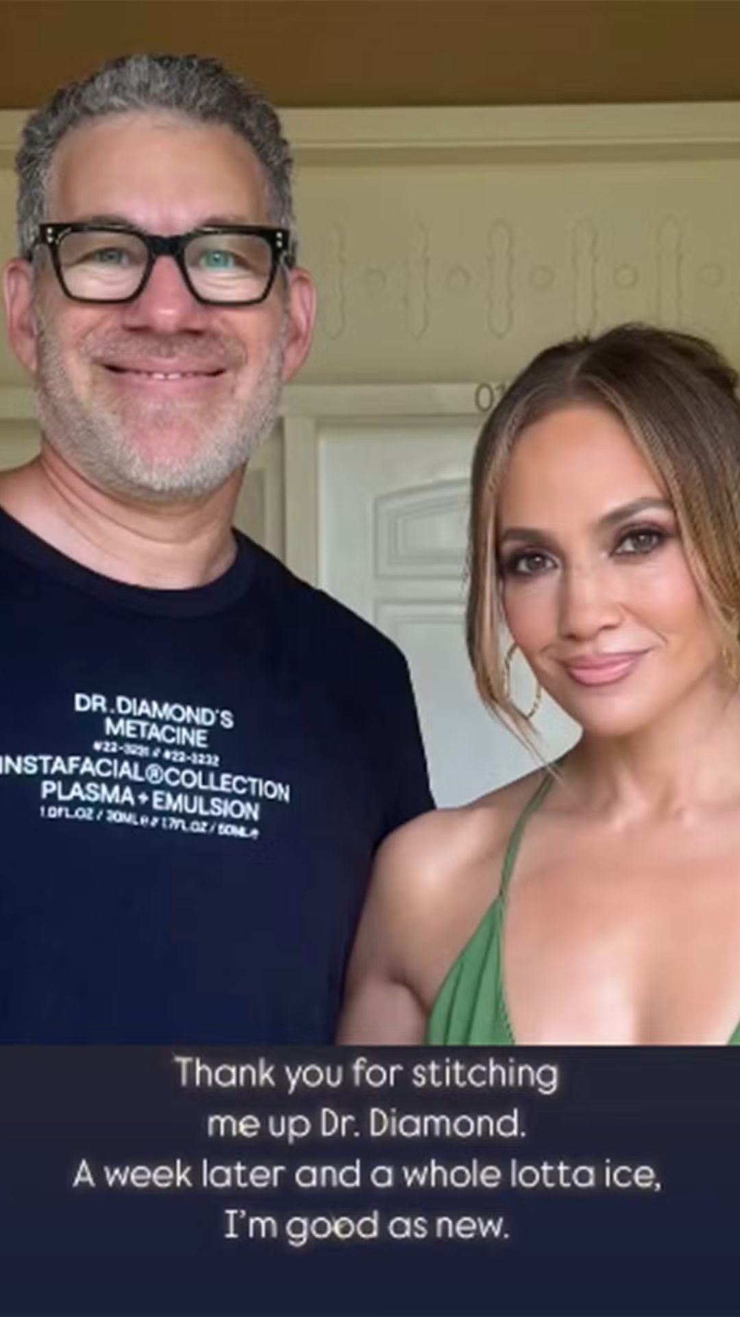 Sem explicar exatamente como ocorreu o incidente, Jennifer Lopez também usou a rede social para acalmar os fãs e agradecer o médico que realizou os cuidados no local da lesão.