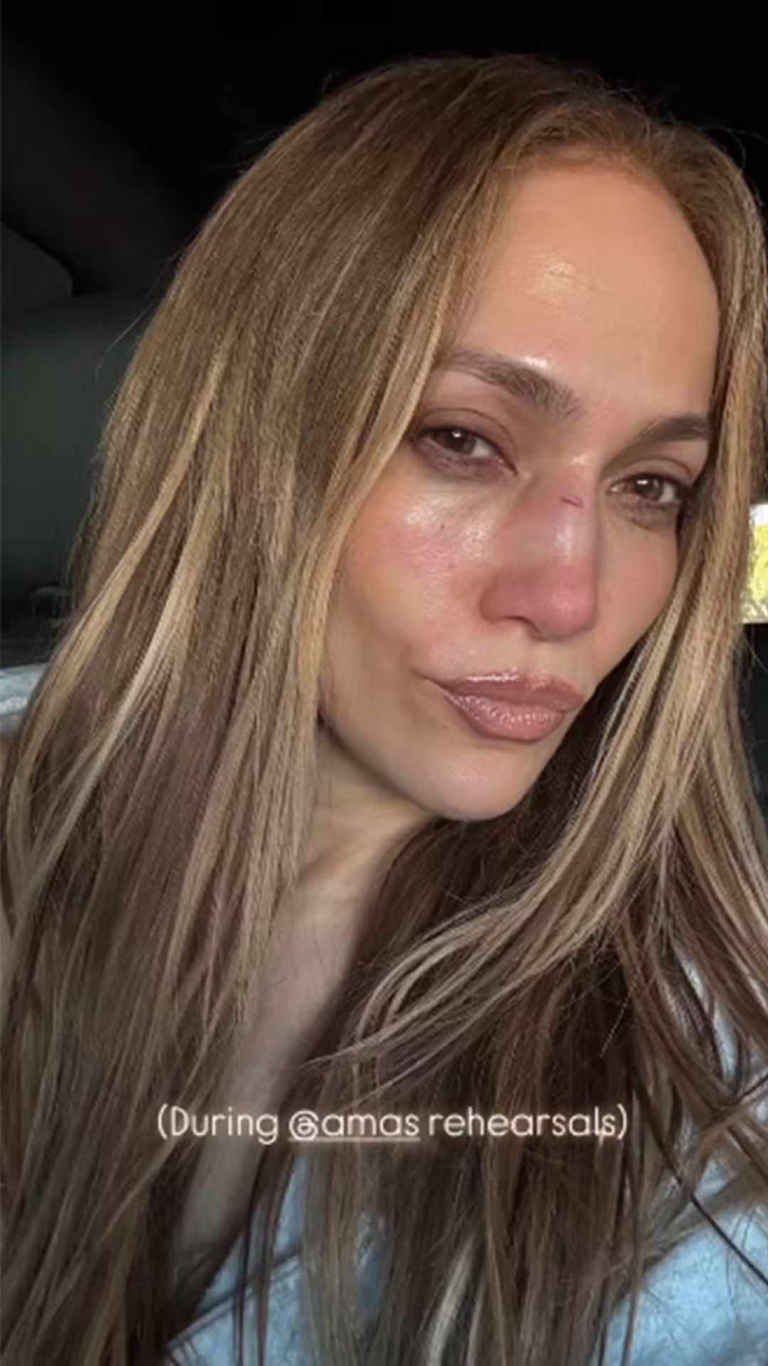 Jennifer Lopez, de 55 anos, contou aos mais de 248 milhões de seguidores no Instagram, na terça-feira (13), que se machucou durante os ensaios do American Music Awards, premiação marcada para o dia 26, na qual ela será a apresentadora.