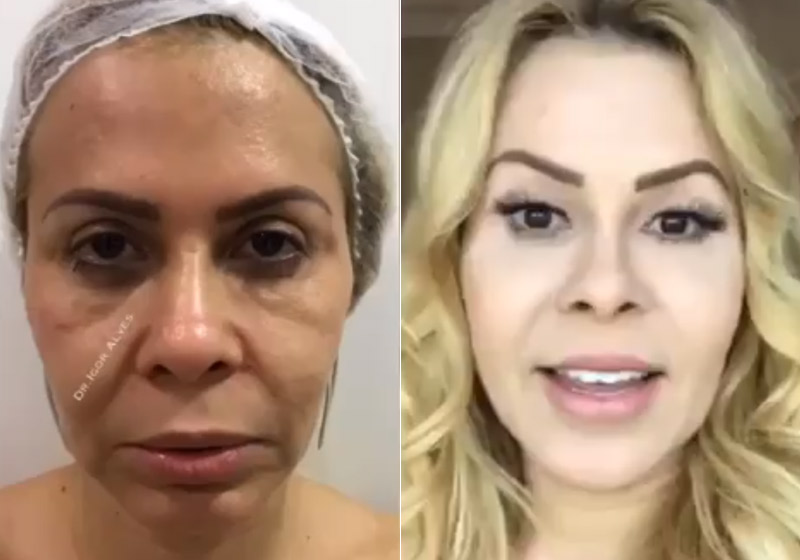 “Tudo o que é bom deve ser compartilhado, merece ser. Então quero compartilhar com vocês o resultado da minha harmonização facial. Ainda está um pouquinho inchado, mas vai ficar melhor ainda, eu amei”, começou.