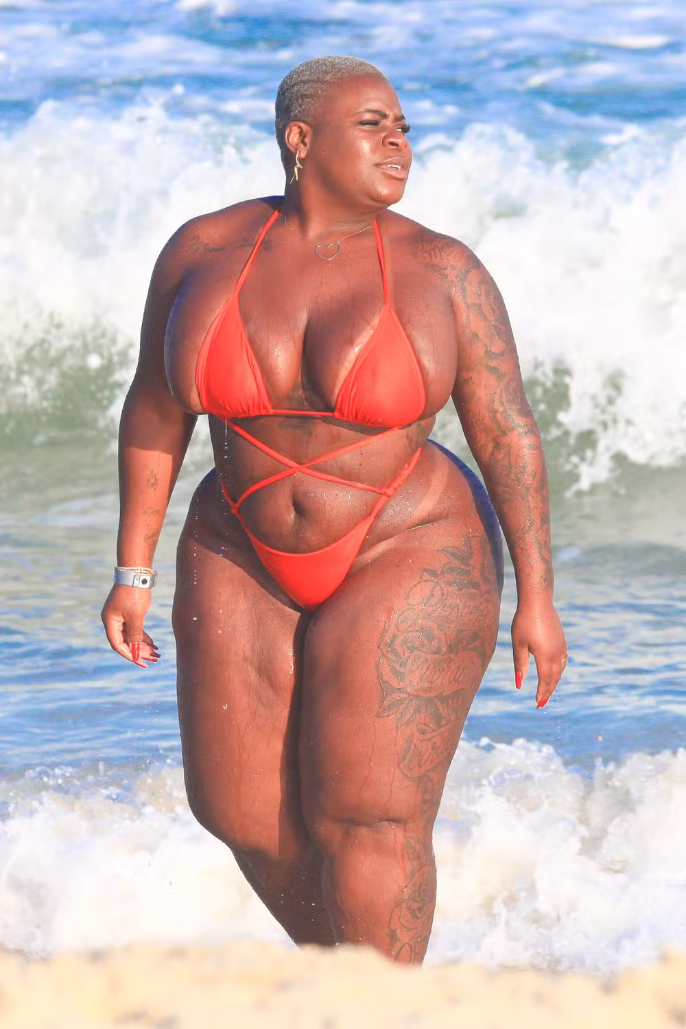 Jojo Todynho aproveitou o feriado do dia do trabalho para ir à praia da Barra da Tijuca nesta quarta-feira (1º). A funkeira colocou o corpão pra jogo e se divertiu com amigos.