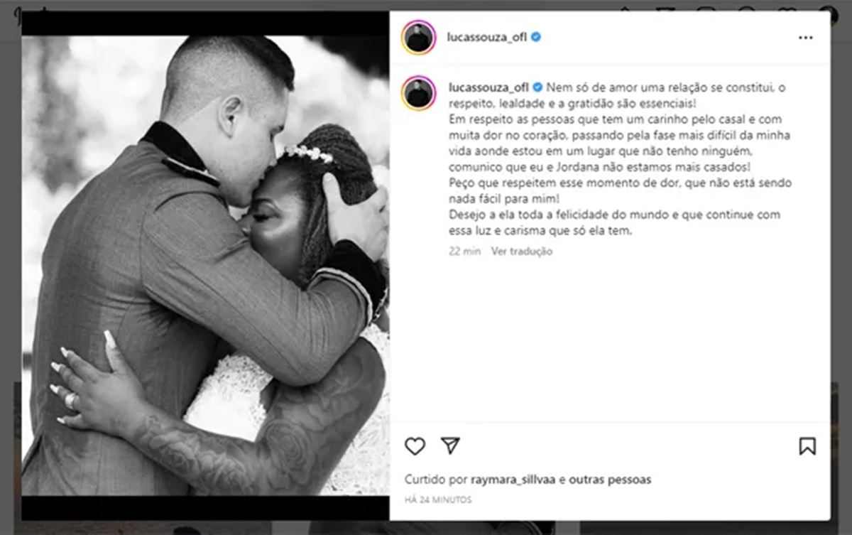 Publicação de Lucas Souza (Foto: Reprodução/Instagram)