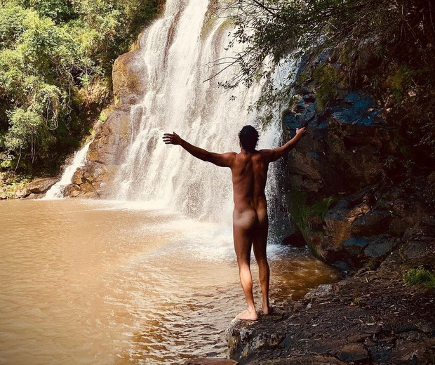 José Loreto aproveitou esta quinta-feira (16), em que é comum publicar fotos antigas, para relembrar um clique bem livre. O ator, de 37 anos, compartilhou uma imagem em que aparece pelado, de braços abertos, na pedra na beira de uma cachoeira em Cambará do Sul, no Rio Grande dos Sul.
