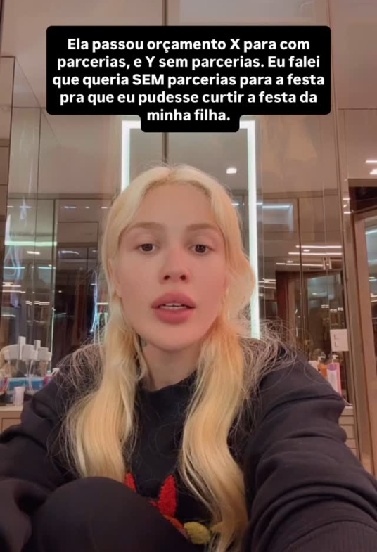 "Quando comecei a organizar o aniversário da Cecília, precisava de uma pessoa para organizar a festa. Tinha uma moça que já tinha entrado em contato com a gente e queria muito fazer nossos eventos e festas, mas nunca tinha dado certo. Ela passou o orçamento do evento com parcerias e sem parcerias. Eu falei que não queria com parceria nenhuma, porque você precisa dar atenção aos parceiros, gravando vídeo, marcando. Eu queria curtir o dia com a minha filha, curtir com ela e que ela tivesse minha atenção", contou.