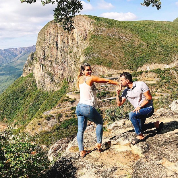 Clima de romance! Kelly Key e Mico Freitas posaram juntos em uma foto publicada nesta segunda-feira (7) nas redes sociais. Na imagem, ele está ajoelhado beijando a mão da musa fitness. Os dois fizeram o clique na Serra da Leba, em Angola.