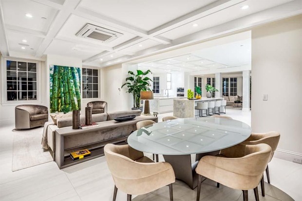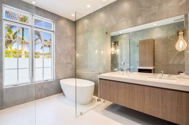 A casa tem mil metros de construção distribuídos em aproximadamente 2,6 mil metros quadrados de terreno. Na parte interior, que conta com três andares, há seis quartos, sete banheiros, um lavabo, uma adega e uma sala de jogos com mesa de bilhar.