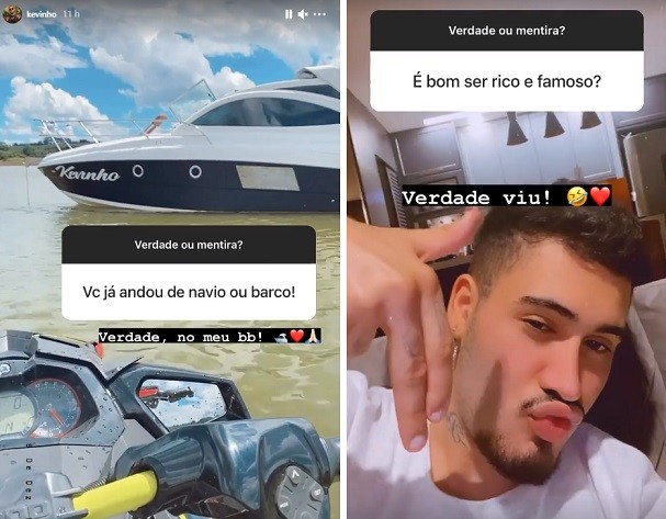 Um seguidor questionou se ele já andou de barco. "Verade, no meu bebê", disse, mostrando a lancha com seu nome. "É bom ser rico e famoso?", perguntou mais um. "Verdade, viu", respondeu.