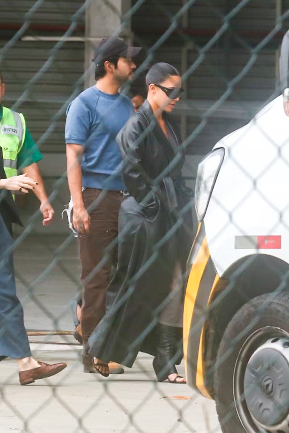 A socialite apostou em um look all black para chegar em terras tupiniquins. Com o cabelo preso em um coque, óculos escuros e um sobretudo alongado, a empresária manteve o ar sofisticado e discreto.