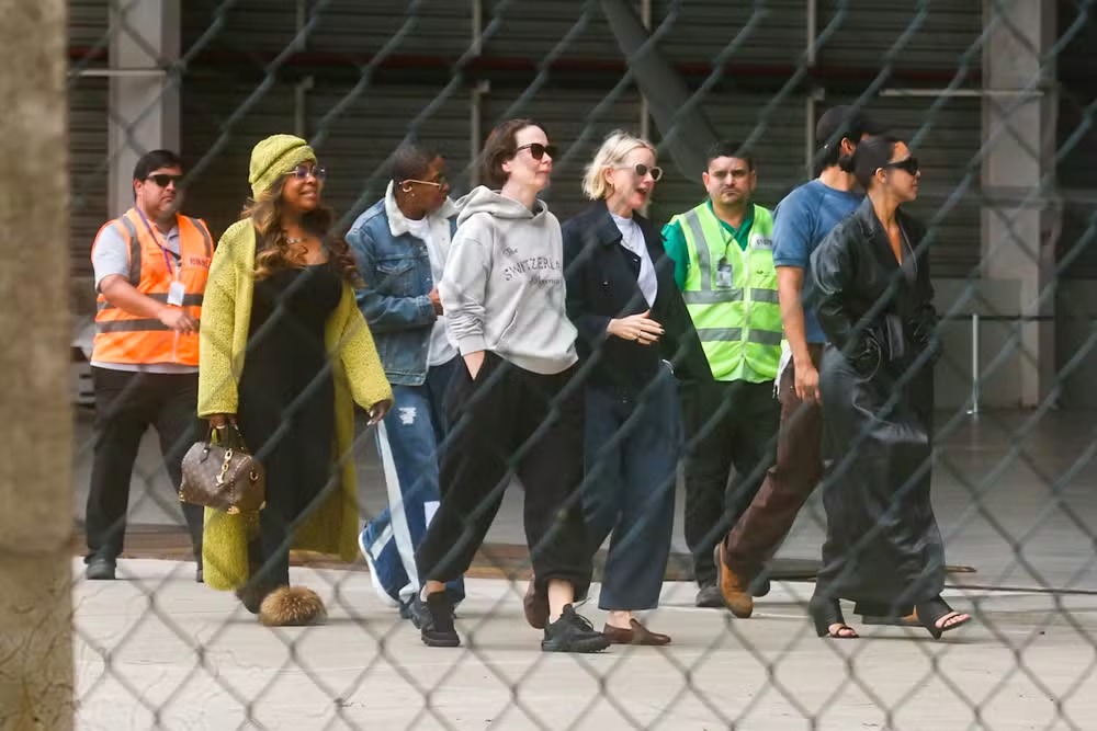 Nesta segunda-feira (10), a influenciadora Kim Kardashian, de 45 anos de idade, desembarcou no Aeroporto Internacional do Rio de Janeiro. A empresária estava acompanhada das atrizes Naomi Watts e Sarah Paulson, que juntas vão participar da première de “Tudo é Justo”, nova produção da Disney.