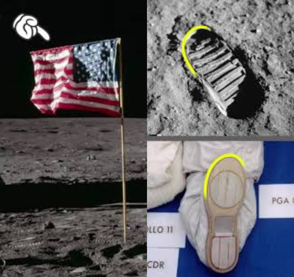 A bandeira hasteada na lua e a diferença entre a bota e a pegada dos astronautas. Foto: Reprodução/Instagram