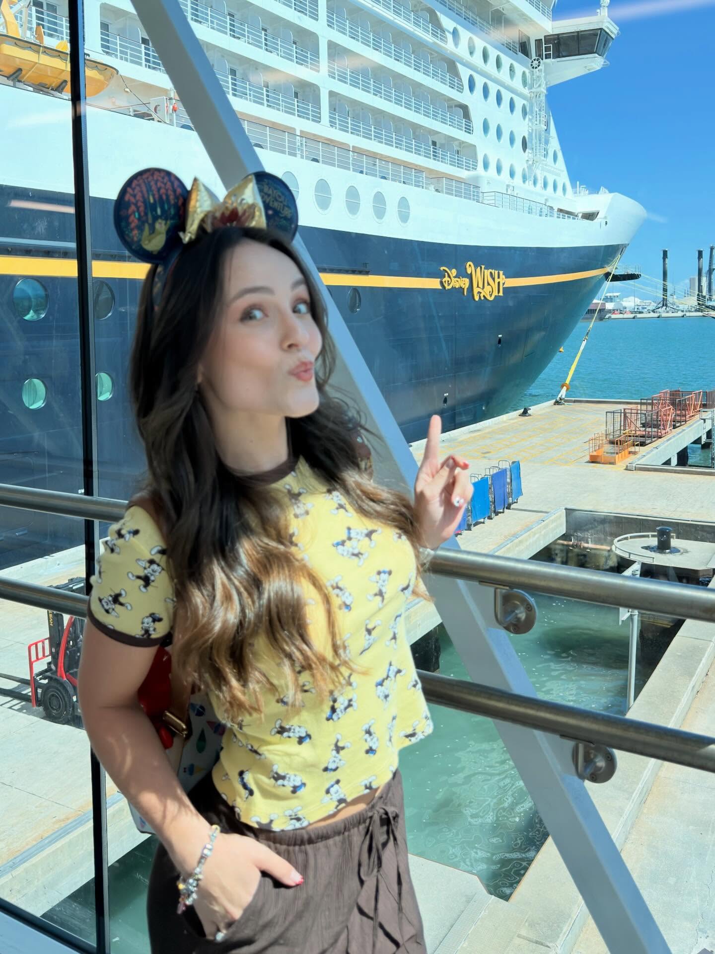 Nas redes sociais, a atriz publicou um albúm de fotos no cruzeiro temático da Disney e celebrou o momento especial ao lado do amado. “A bordo do Disney Wish 🚢❤️⚓️ Onde o sonho e a magia se realizam em alto mar”, escreveu ela na legenda.