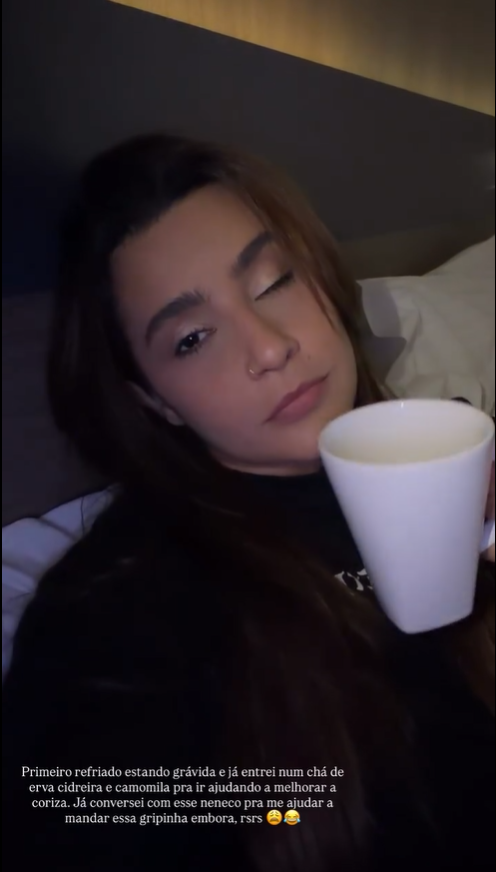 Nos stories do Instagram, Lauana contou que tem adotado cuidados naturais para aliviar os sintomas. “Primeiro resfriado estando grávida e já entrei num chá de erva-cidreira e camomila para ir ajudando a melhorar a coriza”, escreveu. Em tom humorado, a artista ainda comentou: “Já conversei com esse ‘neneco’ para me ajudar a mandar essa gripezinha embora”.