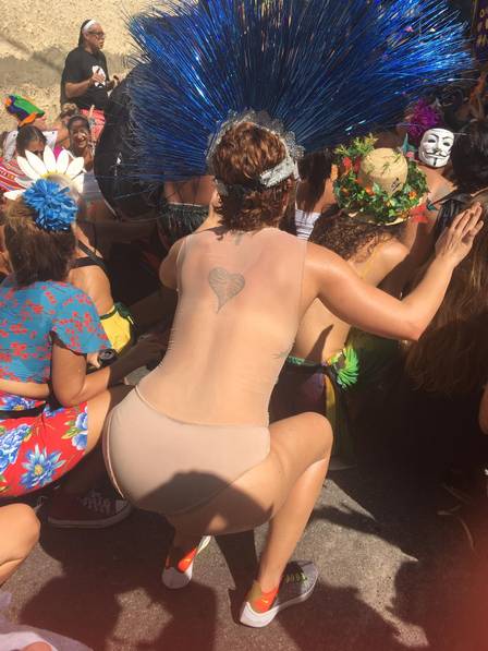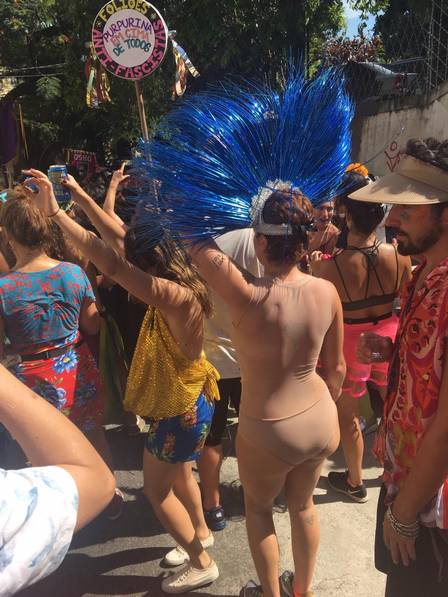 Apaixonada por carnaval de rua, Leandra Leal começou esse sábado curtindo um bloco alternativo em Santa Teresa, na Zona Central do Rio. Vestindo um maiô nude, a atriz curtiu o cortejo animada ao lado de amigos. Simpática, ela atendia aos pedidos de foto dos foliões e desceu até o chão ao som da bateria.