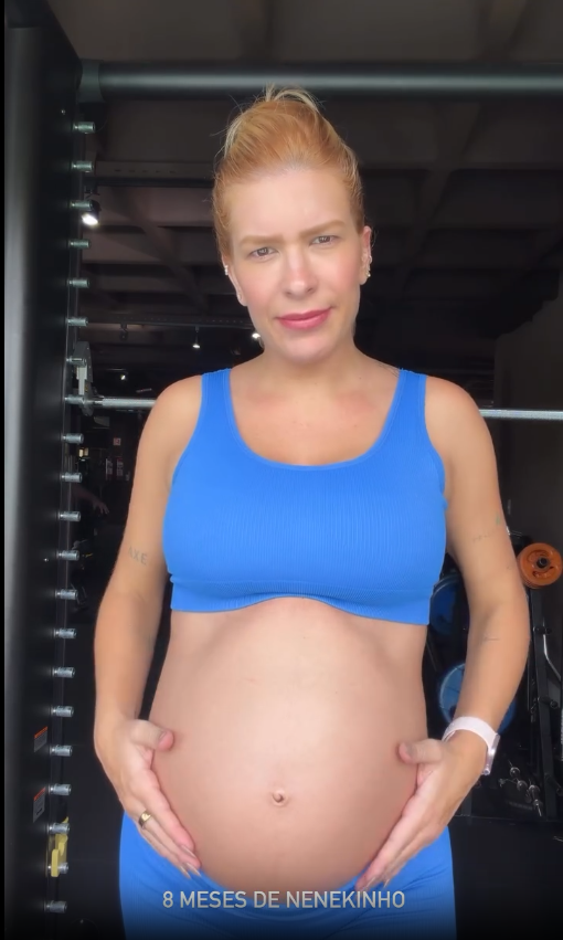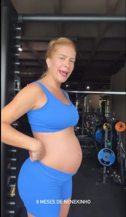 Em vídeo publicado pela manhã, ela reagiu com surpresa ao crescimento na reta final da gravidez. “Bom dia. Teve alguém que cresceu, hein. Oito meses de nenekinho. Deu um pulo. Olha essa barriga”, disse.