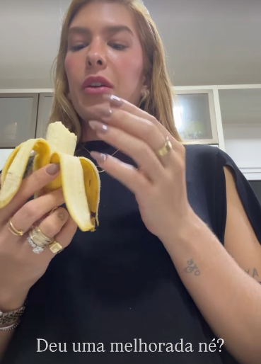 Nos stories do Instagram, Lore contou que esta gestação tem sido bem diferente da anterior e divertiu os fãs ao falar sobre seu novo desejo: comer banana com leite em pó.