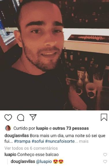 Ainda de acordo com o jornalista, o ficante da atriz é o paulista Douglas Villas. Apesar de não querer falar sobre o possível romance com o bartender, Luana expressa bastante carinho por ele nas redes sociais.