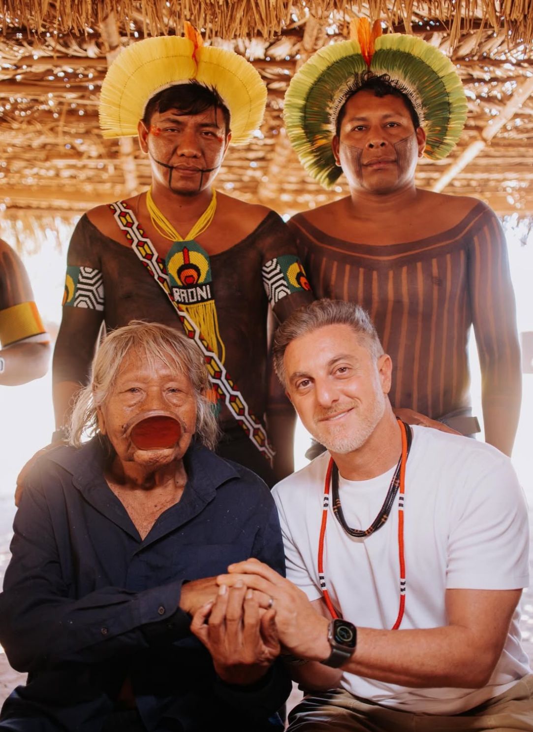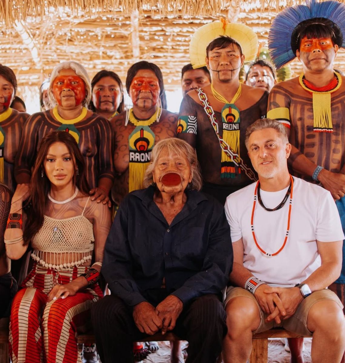 Luciano Huck e Anitta visitam Território Indígena do Xingu, no Mato Grosso e encontram o Cacique Raoni