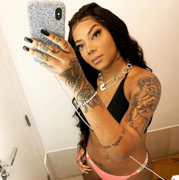 Com um carão poderoso, a compositora tirou uma selfie no espelho e deixou à mostra o corpo escultural. Além de exibir a barriga sarada, ela revelou algumas das tatuagens que tem espalhada pelo corpo.