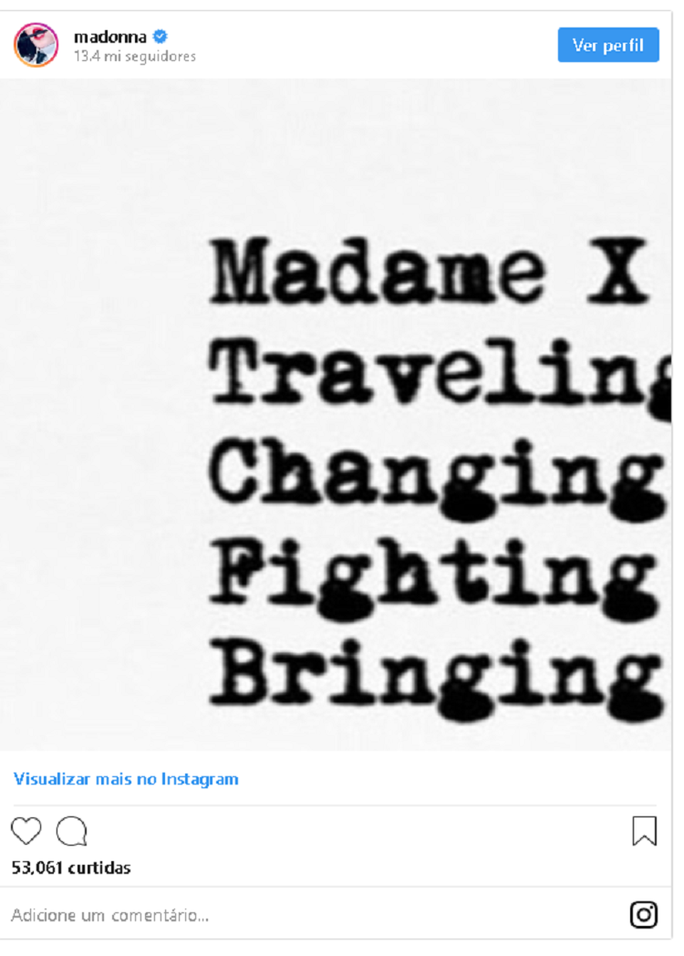 Fim do mistério. Depois de algumas semanas publicando fotos misteriosas em seu perfil no Instagram, Madonna finalmente divulgou o nome de seu novo e 14º álbum da carreira: "Madame X". A data de lançamento, porém, ainda é desconhecida.